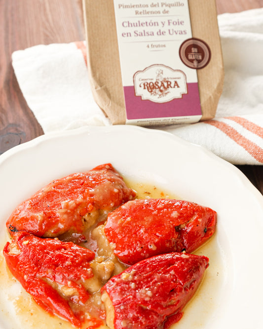 Pimientos del Piquillo Rellenos de Chuletón y Foie en salsa de Uvas de La Rosara