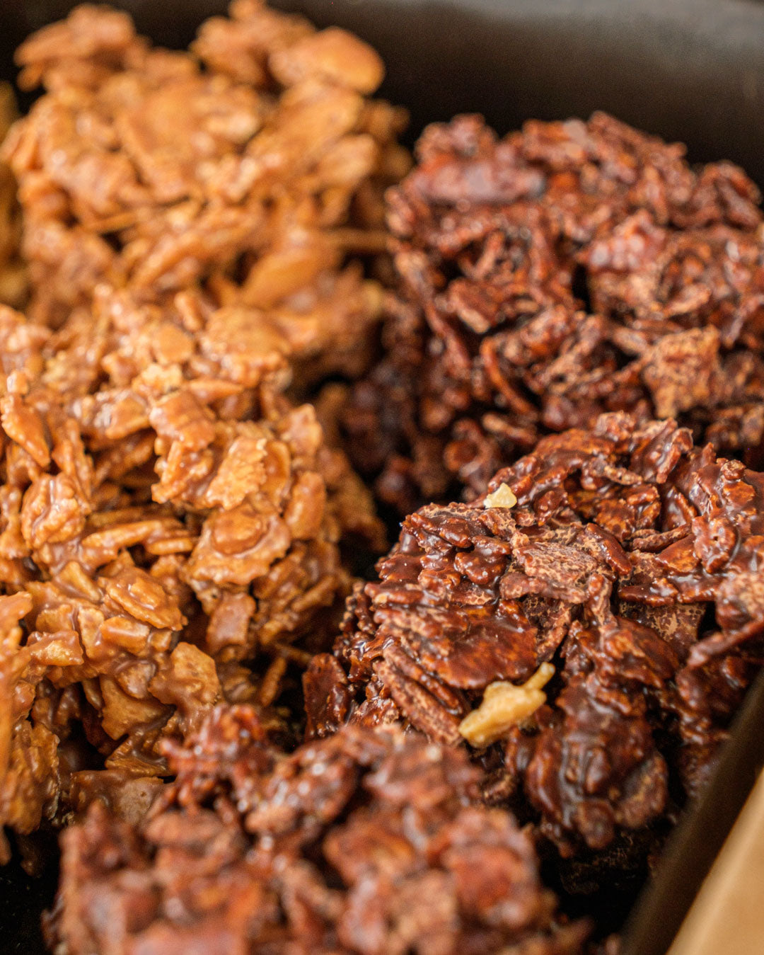 Nuestras pequeñas rocas de chocolate negro, blanco, con leche y sabor a caramelo están elaboradas a mano, con variedades de cacao Amelonado seleccionadas de la isla africana de Sao Thomé y desde Santo Domingo.